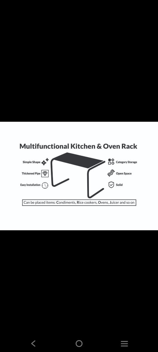 স্টাইলিশ এবং আধুনিক: মাল্টিফাংশনাল কিচেন অ্যান্ড ওভেন র্যাকটির ডিজাইন অত্যন্ত স্টাইলিশ এবং আধুনিক, যা রান্নাঘরের সৌন্দর্য বৃদ্ধি করে এবং অন্যান্য ফার্নিচারের সাথে মানানসই হয়।